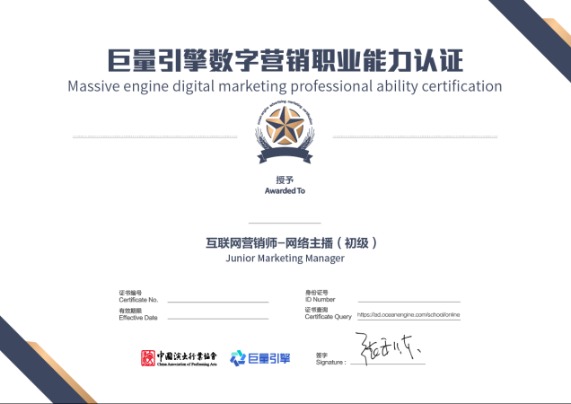 4.通过项目考试可申请“巨量引擎数字营销职业能力认证——互联网营销师:网络主播(初级)”证书。