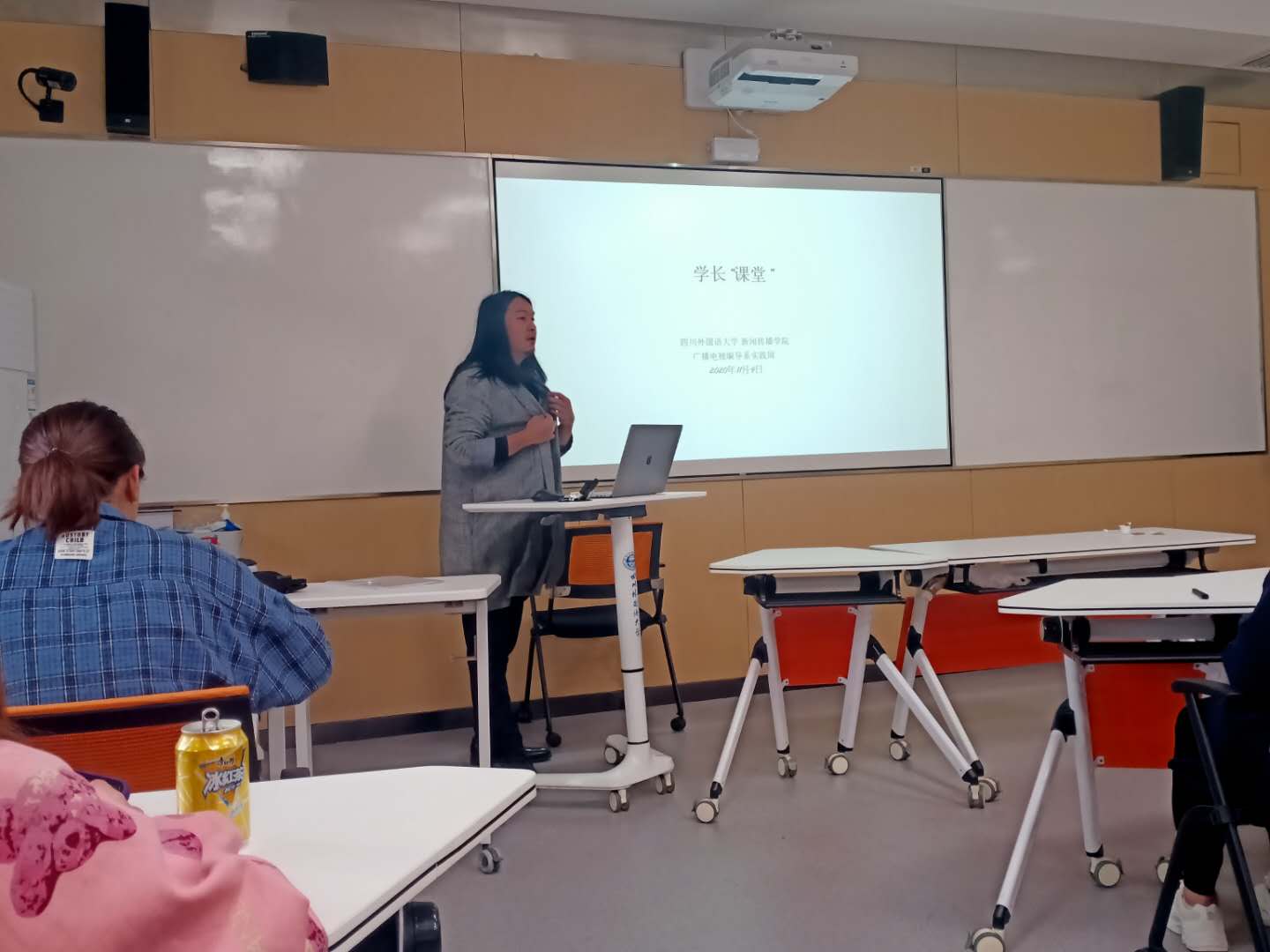 2020年11月4日下午两点30分,我校2013级广播电视编导专业学生薛秋富回到我校,为我校2020级太阳成集团tyc33455广播电视编导的同学们上了一场别开生面的学长“课堂”,该“课堂”由太阳成集团tyc33455邬建中老师主持。