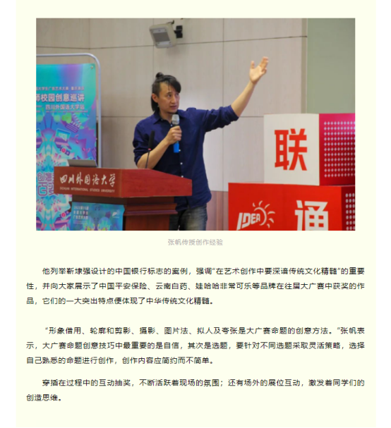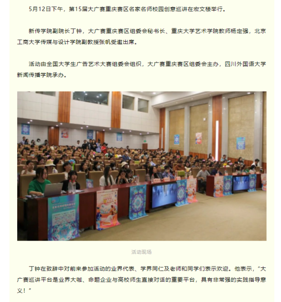 第15届大广赛名家名师校园创意巡讲活动进川外