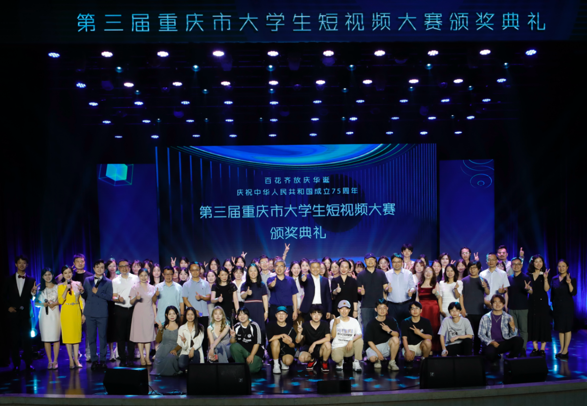 2024年5月24日第三届重庆市大学生短视频大赛颁奖典礼在重庆邮电大学科技会堂隆重举行。本次大赛由重庆市文学艺术联合会主办,重庆市电视艺术家协会、重庆邮电大学承办大赛汇集全国高校共2236部短视频作品,最终评出六奖项类别我院方艺瑾、李子韩、李蕊、谢林哲等四位同学创作的作品《奉献有我》获得最佳短视频摄影奖一等奖。