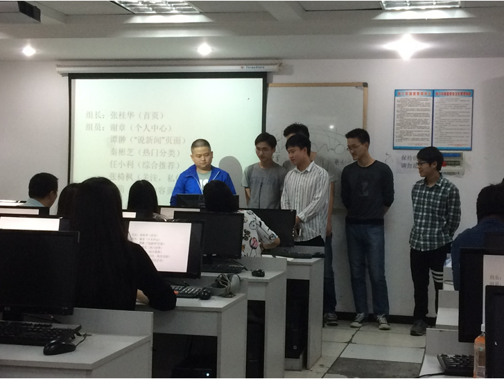 4月22日下午2:30,我院2015级网络与新媒体专业全体同学在新传实验室惠普机房参加网络传播综合实务课程资讯类APP设计与开发项目成果答辩会。答辩会上展示了7组APP作品的策划。