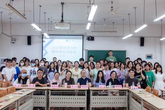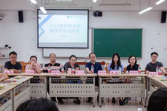 此次会议由系主任廖梦夏老师主持,蓝若宇老师、幸念老师、杨清波老师、王飞老师、陈树生老师、辛文娟老师、刘昊老师、邓昕老师出席见面会现场,全体2020级网络与新媒体专业学生共同参与交流。