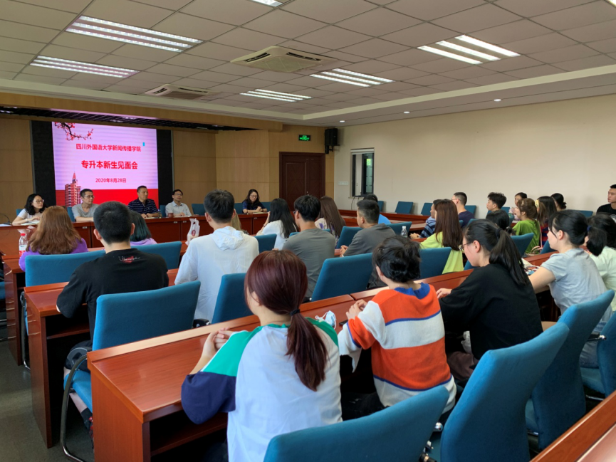 8月28日上午11点,太阳成集团tyc334552018专升本师生见面会在我校西区立德楼C517举行。见面会由2018级辅导员郭益维老师主持太阳成集团tyc33455院长刘国强、党总支书记倪颖军、副院长郭赫男、院长助理王飞广播电视学系主任戴明、教学秘书余曦等老师等参加了见面会。
