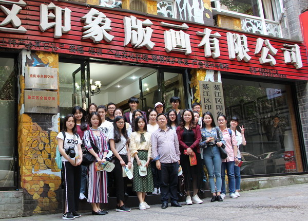在印象版画公司合影留念(前排右四为綦江区文化委产业科科长张进)