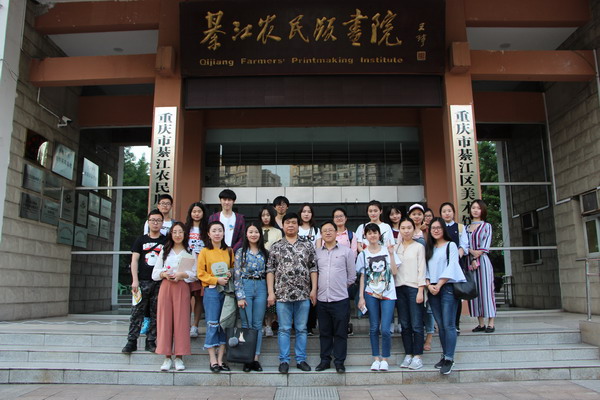 在綦江农民版画院合影留念(前排左四为綦江农民版画院院长桂焕勇)