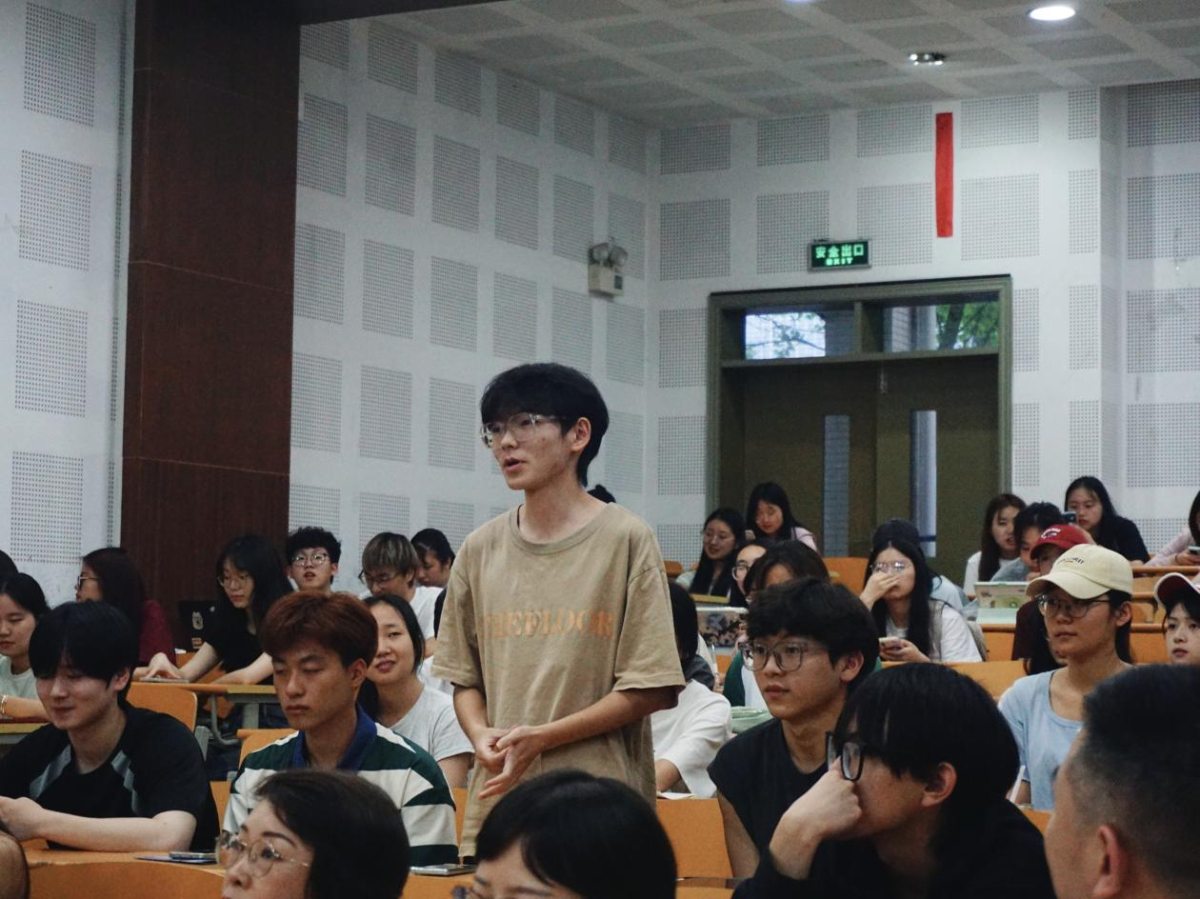 223班学生欧阳轩问道:“如果我发现我不是很喜欢自己已经选择的专业,有没有什么补救措施呢?”严功军用哲学的定义巧妙地向同学解答道,“就像哲学是指‘爱智慧的学问’,‘爱智慧’是指即使求而不得,但仍要坚持去追求真理。没有绝对好与不好的专业,有的是对自己的不断认知和特长的不断发掘。人生的答案,结果都是不确定的,但是我们可以不断地去尝试、去体验,让我们对人生的追求落到实处,追求的过程才是最美的。”
