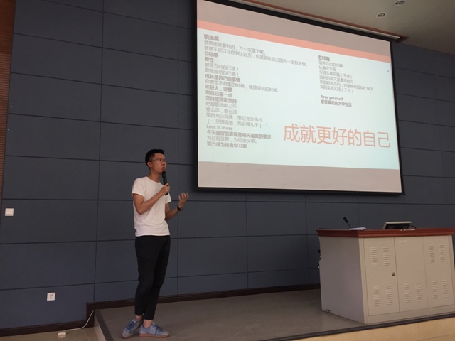 现任职阿里巴巴新零售服务体验事业部主管的聂祎校友通过关键词分享,从自己大学期间的实习实践体验,谈到通过校招进入阿里巴巴工作的经历,鼓励同学们培养自己的兴趣,认真学好专业。聂祎校友着重强调了“目标感”和“要性”两个关键词,并以“阿里名言”鼓励同学们,无论在专业学习、实践还是工作都要“坚持坚持再坚持”;鞭策师弟师妹不断进取,因为“今天最好的表现是明天最低的要求”。