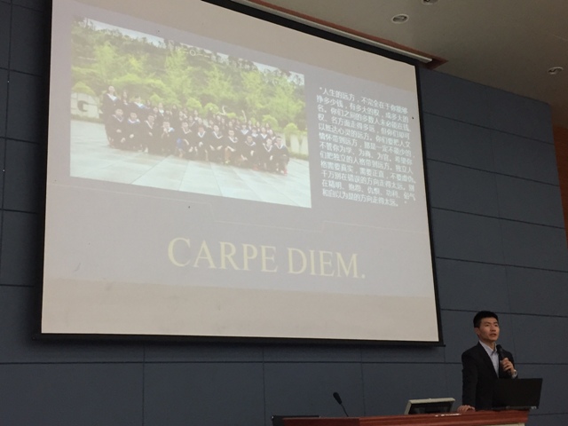 周志东校友本科毕业后进入华中科技大学新闻与信息传播学院深造,硕士毕业后就职于华为企业业务部,任济南代表处客户经理。他从“人生苦短”、“来日方长”、“自知之明”三方面给大家分享了自己的成长经历,并勉励师弟师妹们说,“在川外,每一声清晨的鸟鸣与每一束午后的阳光都不应被辜负”。周志东校友坦承自己“也曾考试低分、学生会竞选失败、评奖学金落选,但以上的小挫折都是最恰当的试炼。”他鼓励同学们选择适合自己的道路,认为“这是一切美好开始的前提”。
