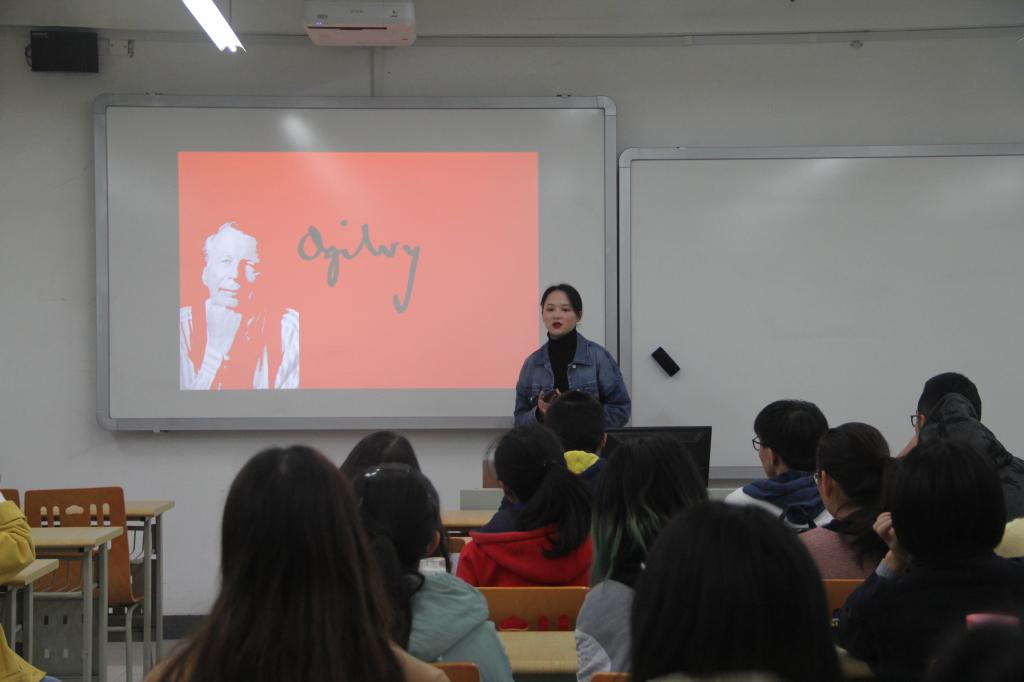 秦艺境同学表示,做一个好的领导要做到亲自动手,为员工提供更多的可能性。她以苹果公司和古驰的广告为例对如何创作高水平的广告进行探讨。她说道,写文案是要注重实用性而不是虚假的华丽。张馨月同学认为,做广告不是简单的叙述,而是要洞悉消费者、市场,强调市场调研的重要性。会上其他同学也表达自己的独到见解,从不同角度诠释书中理论,互相交流读书心得与体会。