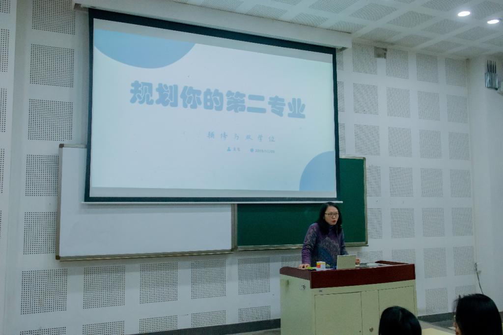 讲座伊始,王飞副教授以“规划你的第二专业——辅修与双学位”为主题,向到场同学阐释了“辅修”与“双学位”这两个概念的区别和联系,并给出了关于报读和选择辅修双学位的几点建议。尤其是建议大家理性选择,并尽早报名。