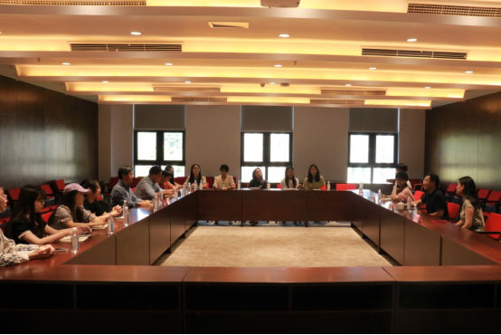 在王嫚总经理的带领下,川外调研团队参观了人民日报社重庆分社,并与姜峰主任等一起,观看了人民日报客户端重庆频道相关情况介绍。