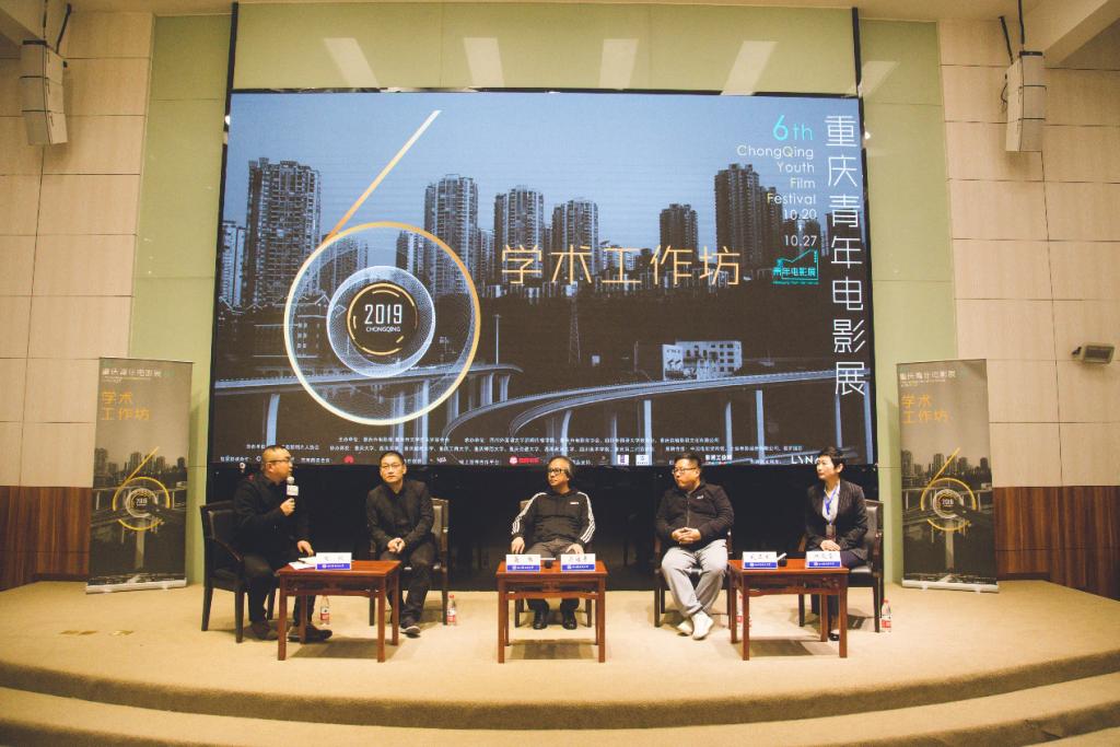 10月22日下午3点,第六届重庆青年电影展学术工作坊于四川外国语大学宏文楼国际报告厅成功举办。本届学术工作坊以“新时代青年电影人的路径与选择”为主题,邀请到了北京电影学院中国电影文化研究院执行院长、《北京电影学院学报》主编、教授、博士生导师吴冠平;上海市文艺评论家协会副主席、中国电影家协会理论评论工作委员会副会长、教授、博士生导师聂伟;中央戏剧学院电影电视系主任、中国电影家协会理事、教授、博士研究生导师武亚军;复旦大学教授、博士生导师、北京电影学院未来影像高精尖创新中心研究员杨俊蕾四位嘉宾来到现场,重庆市电影家协会副主席、西南大学文学院影视艺术系主任、教授刘帆主持活动,共同探讨青年电影人的未来发展之路。
