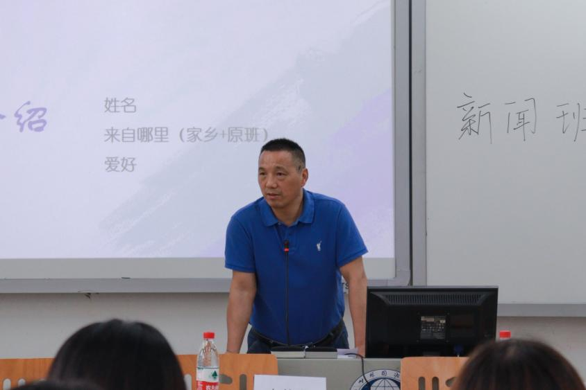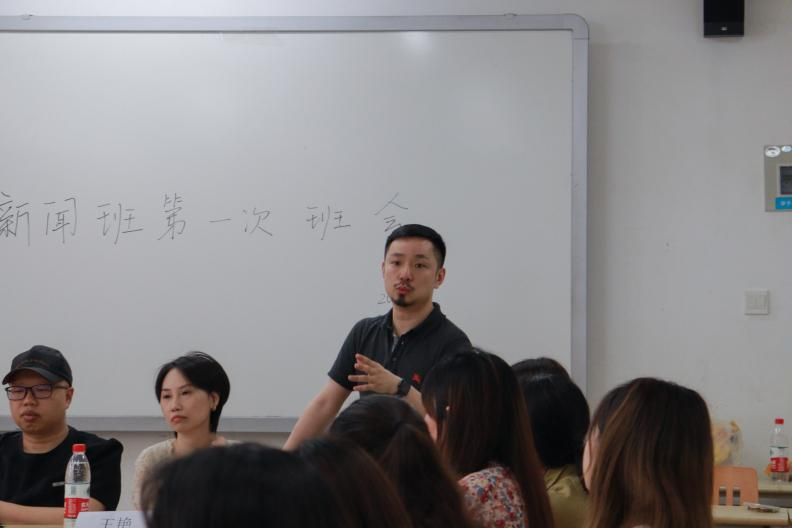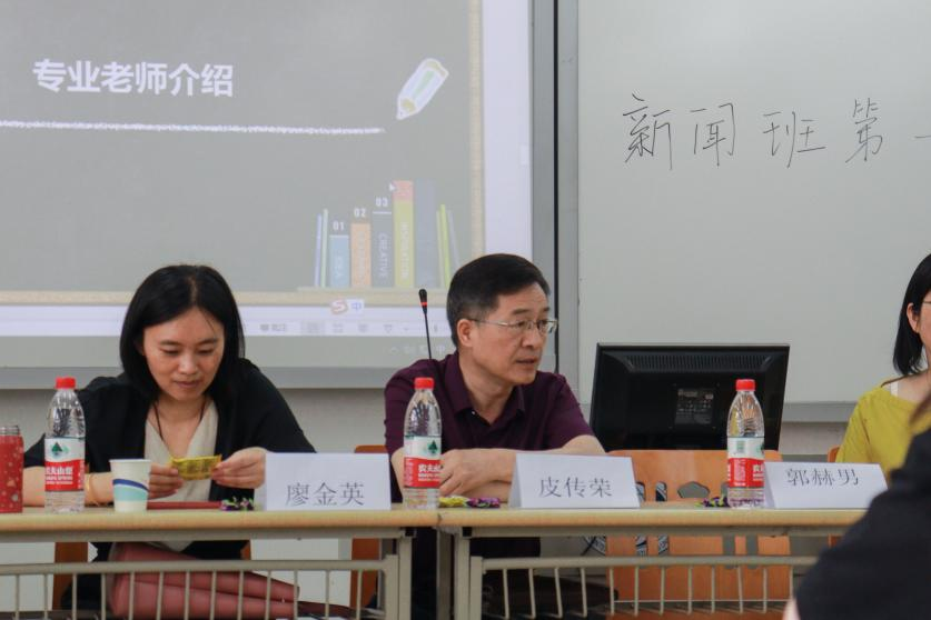 郭赫男教授回顾了我院新闻学专业发展历程,介绍了新闻学专业历届优秀学生取得的成绩,鼓励19级新闻学专业的同学们营造良好和谐的班风、学风建立良好的人际关系。他还分析近年严峻的就业形势鼓励大家考研,培养自身核心素养,提升自我综合能力。