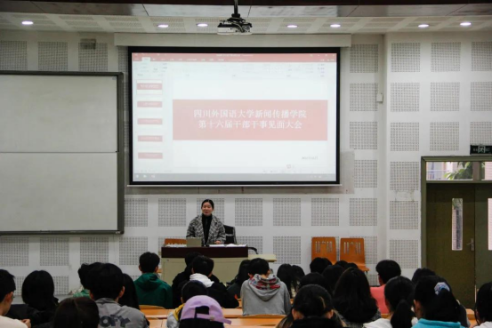 任晓丽书记首先对新一届学生会成员表示欢迎,对实践周中全体学生会成员的培训安排进行了整体说明。她借用陶行知先生的“四问”即“我的身体有没有进步?我的学问有没有进步?我的工作有没有进步?我的道德有没有进步?”,延伸到对学生干部的“四问”、“四个意识”的解读。她指出,新传学生会是一个团结的、向上的、积极奋进的优秀团队。想要延续这样的美誉需要我们每一位学生干部共同努力、共同奋斗。
