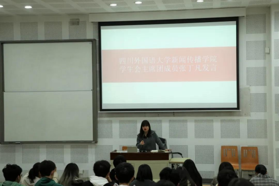 最后,张静宇同学引用习近平总书记的话,“新时代的中国青年要以实现中华民族伟大复兴为己任,增强中国人的志气、骨气、底气,不负时代,不负韶华,不负党和人民的殷切期望。”以此表达她对学生干部的美好期望。