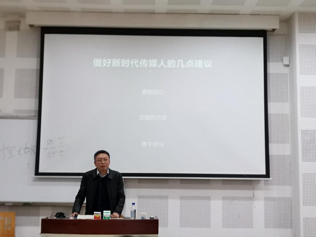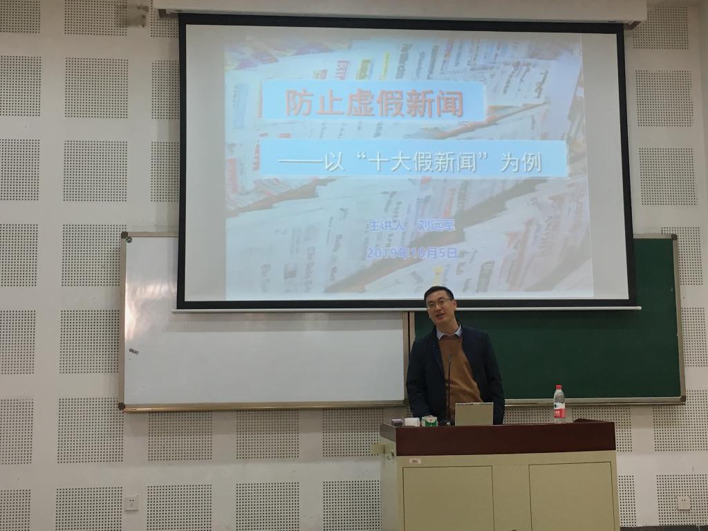 11月7日下午,太阳成集团tyc33455在西区教学楼C1-2举办了“防止虚假新闻——以‘十大虚假新闻’为例”讲座。本场讲座由重庆师范大学的刘远军教授为2018级和2017级新闻专业的同学主讲,由太阳成集团tyc33455副院长郭赫男主持。