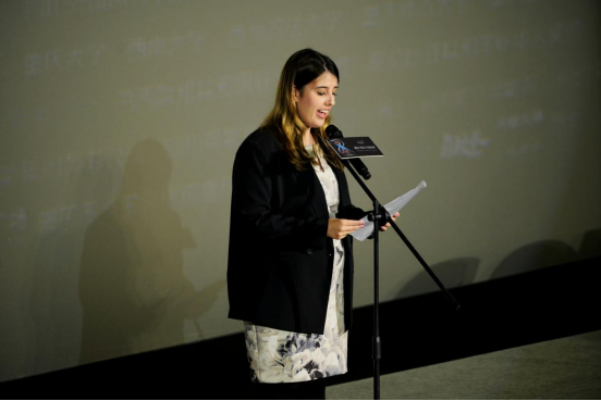 乌拉圭驻华大使馆一等秘书梅赛德斯·阿吉尔(Mercedes Aguiar)女士代表乌拉圭大使馆致辞。她分享了乌拉圭电影和影展的特别缘分并介绍了此次展映的3部乌拉圭影片,表示未来双方在文化领域的合作将大有可为,也十分期待后疫情时代可以有更多面对面交流和互访的机会。