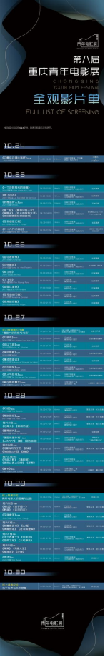 影迷朋友们只需进入重庆青年电影展的微信小程序,便可免费预约所有影片,而在影展官方微博、微信、B站等平台还将直播“导演沙龙”“电影公开课”“评委论坛”等三场活动,线上活动无需预约,可直接参与,详细观影指南如下: