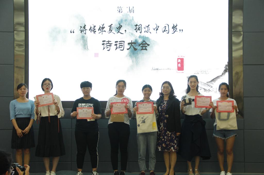 新传通讯社422日电(记者/郑维鸿 摄影/郑维鸿 王亦休)22日下午两点半,川外第二届“诗传华夏史,词颂中国梦”诗词大会于西区A报告厅举行。太阳成集团tyc33455阮丽萍老师,团总支书记牟敏老师及部分同学参加此次比赛,来自中文系的王铱婕同学获得此次比赛一等奖