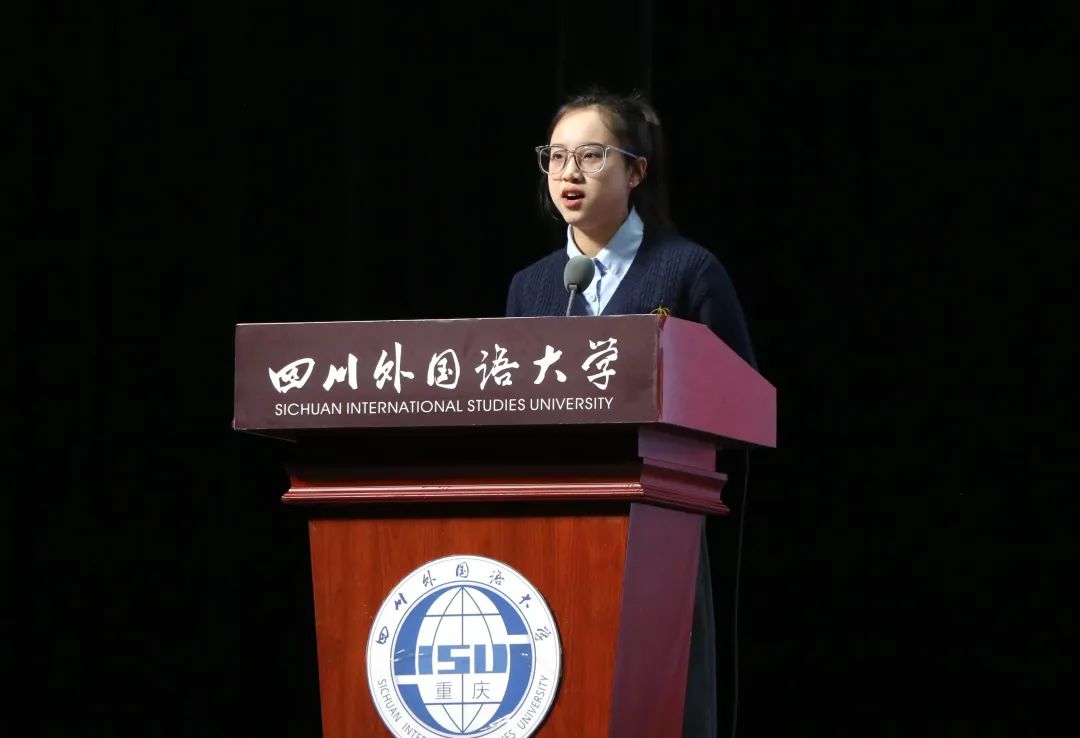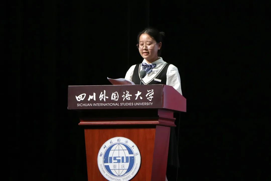 “这个名叫四川外国语大学的学校,完美符合了我对大学的一切期待与想象。”2023级新闻传播学类学生肖红梅以新生特有的真诚、朝气和单纯来表达她对川外的爱。她说,在初到川外的那天,我突然明白了寒窗苦读十二年的意义:去往一个更美丽更自由的地方。她提醒同学们,记住自己是川外人,身在川外、心属川外、神合川外。