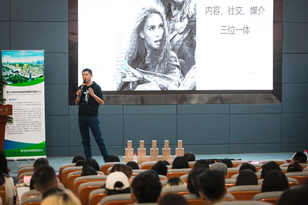 中国商务广告协会IP委员会常务副理事长袁俊先生站在业态从业者的立场上,为同学们分析了良好的商业传播项产生的原因。他从一定的数据中得出结论,现今社会存在人的散布化、信息过载、媒介碎片化的特点。他说:“在这样的时代下,做好内容是唯一能让读者留下印象的方式”,他强调要利用好社交媒体这一平台,企业的创意切入点要契合受众兴趣。通过播放海尔、999感冒灵等品牌的一些优秀广告,并分析它们的成功之处,他总结出了“商业品牌不局限于展示而是场景融入”、“商业品牌不局限于传播而是价值共鸣”、“商业品牌不是单点而是延续”等结论。