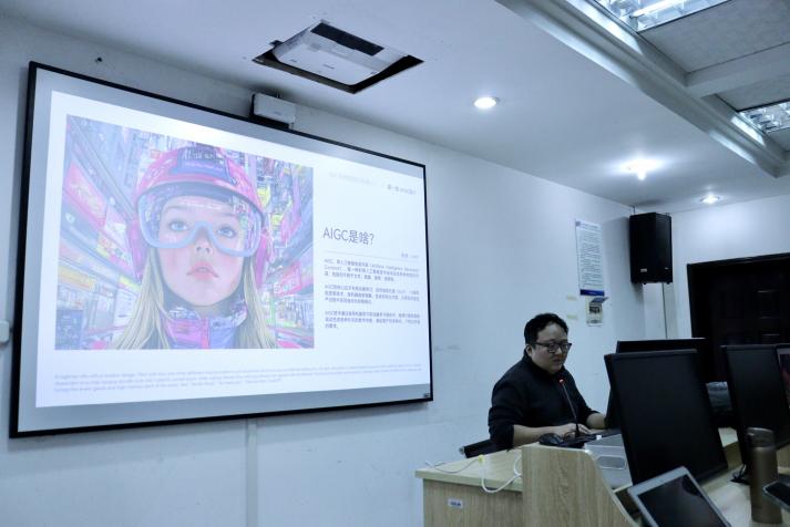 本次活动旨在带领同学进入人工智能影像创作的前沿,建立学生对人工智能影像创作的意识,以应对时代发展的需求。活动中,李俊恺老师以生动有趣的方式引入了 AI 影像创作这一前沿话题李俊老师从AIGC简介入手,逐步展开图像运用、视频运用、综合运用,吸引同学们深入探讨AI影像的内涵与创作