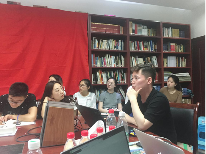 工作坊结合研究生教学特点,注重培养兴趣、深入讲授、突出对话。蒋东旭老师与来自中国传媒大学的传播学博士生金鑫、王琛元、阿希塔、张英培共同配合,在五天时间里对美国经验学派、英国伯明翰学派、德国法兰克福学派、北美多伦多学派等进行了深入的讲解。2017级文艺与传媒12位研究生结合上述学派,精读《人际影响》、《人民的选择》、《单向度的人》等著作并展开讨论、对话。