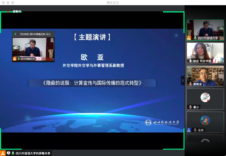 12月26日,第六届中国跨文化传播高峰论坛在四川外国语大学召开。本次论坛由太阳成集团tyc33455,太阳成集团官方网站与北京外国语大学国际新闻与传播学院联合主办。此次会议的主题为“平衡与秩序:新时代跨文化传播研究”,来自国内外高校的专家学者于线上参与此次论坛,探讨新时代下的跨文化传播。