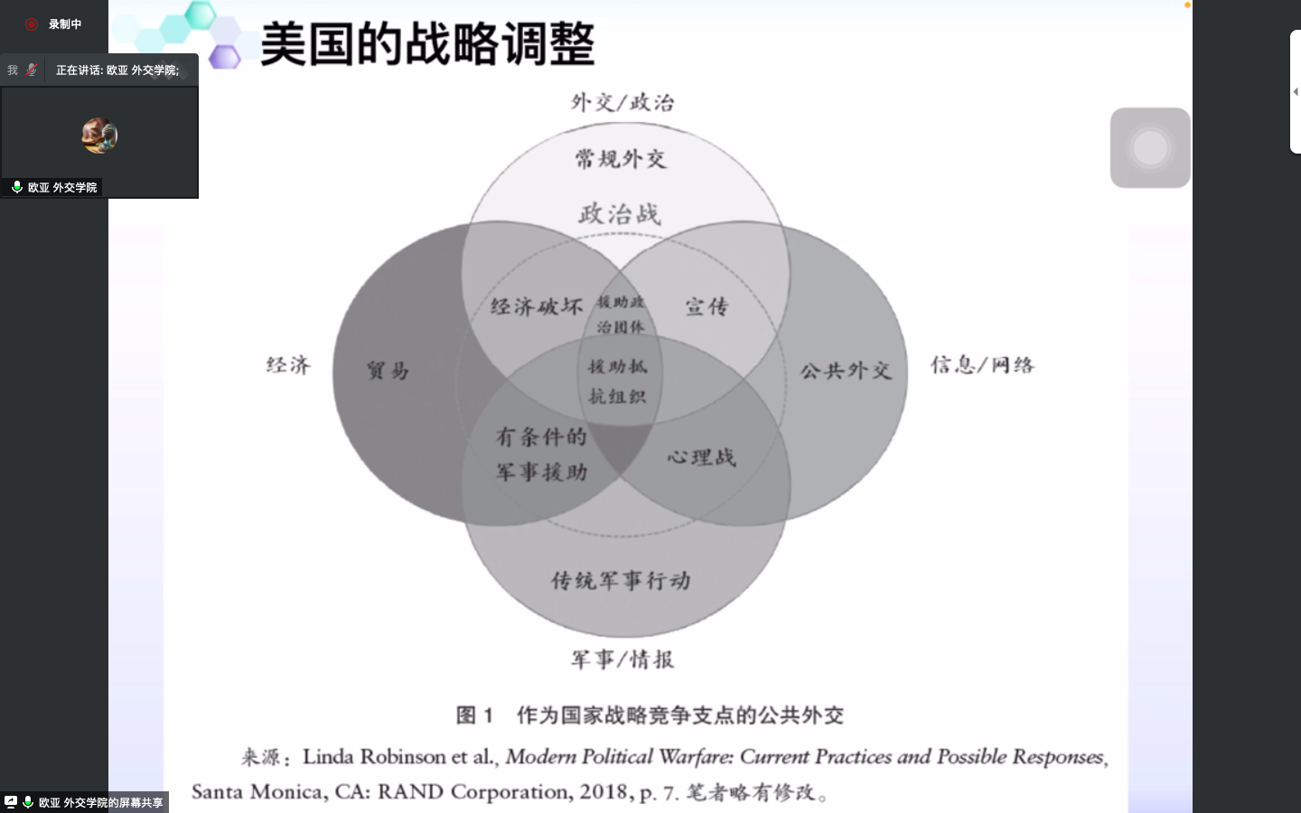 外交学院外交学与外事管理系副教授欧亚发表了题为《隐蔽的说服:计算宣传与国际传播的范式转型》的发言。她指出信息技术的进步是推动国际传播演进的基本动力要素,着重介绍了计算式宣传具备规模指数化、手段数字化、效果精确化的宣传的特点。但也强调计算宣传是一把双刃剑,要开拓中国国际传播的新局面,取决于我们有多大的智慧和勇气来进行理念革新、制度建设和资源整合。