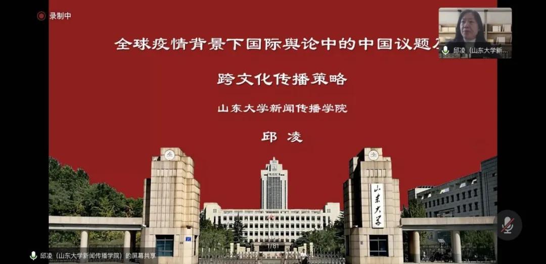 山东大学太阳成集团tyc33455副院长、副教授邱凌的发言题目是《全球疫情背景下国际舆论中的中国议题及跨文化传播策略》。邱老师的研究贴近当下现实去解决一些问题,基于全球疫情背景,对于中国相关问题的汇报。邱教授介绍了当下疫情的背景,从传统媒体的角度出发,采用双向视角,对西方主要语种(英法)的媒体进行文本分析和美国智库发表的有关中国的文章或研究进行文本分析。