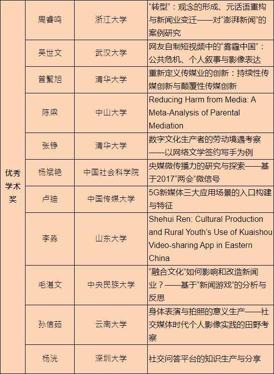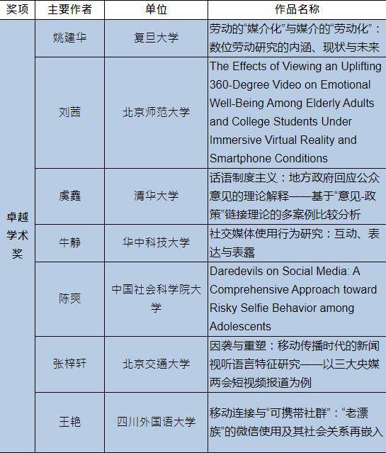 附:第二届青年新媒体学术研究“启皓奖”获奖名单