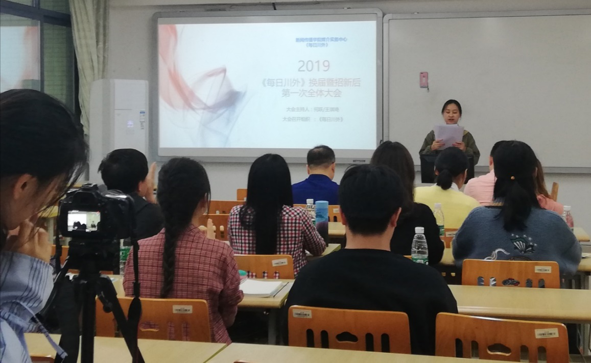 媒介实务中心1014日讯(记者梅川高欣姚静/文 佘婴/图)老师寄语,新老交接,颁发荣誉纪念册,现场成渝连线……昨(13)日下午,《每日川外》2019换届暨第一次全体大会在四川外国语大学西区教学楼B102举行。两个小时的会议传递出一个共同心声:《每日川外》将全新出发,以改革创新谱写新篇章