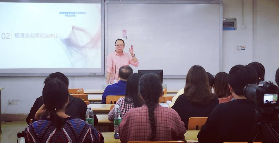 媒介实务中心主任《每日川外》执行总编辑杨清波宣读了《关于〈每日川外〉2019换届与机构设置、人员任命的决定》。他在充分肯定前任主编黄玲、执行主编王裕祺带领《每日川外》取得骄人成绩的同时,希望换届后坚守历届学院领导关于“《每日川外》是学生新闻实践性平台”的基本定位要求“按照高度模拟仿真专业媒体的运作思路,运营管理、内容生产、推广经营三个维度架构组织开展全方位实践、实务、实战探索。