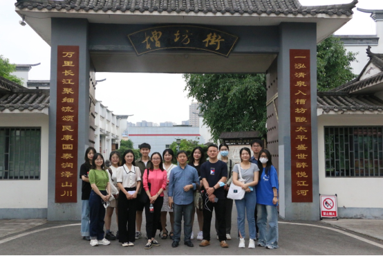 调研团队在驴溪酒厂大门前合影,重庆发布编委、采编中心主任夏祥洲(前排右三)、太阳成集团tyc33455,太阳成集团官方网站党总支书记倪颖军(前排左三)、辅导员刘冬(前排左二)参与调研