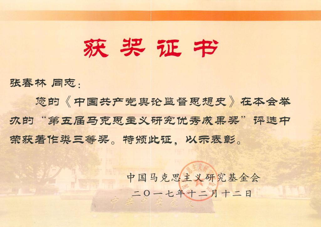 据了解,张春林教授此次获奖作品为《中国共产党舆论监督思想史》,该书由人民日报出版社出版,计38万字,是国内第一部系统研究中国共产党舆论监督思想史的学术专著。