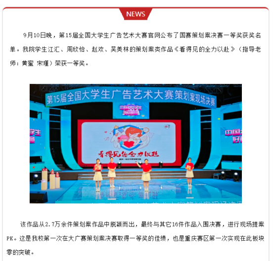 大广赛策划案全国决赛传喜讯:一等奖!