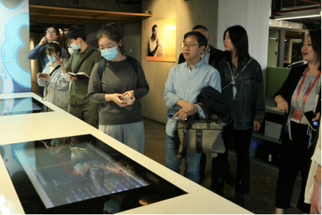 大龙网集团公共事务副总监张明镜(右一)给川外师生讲解