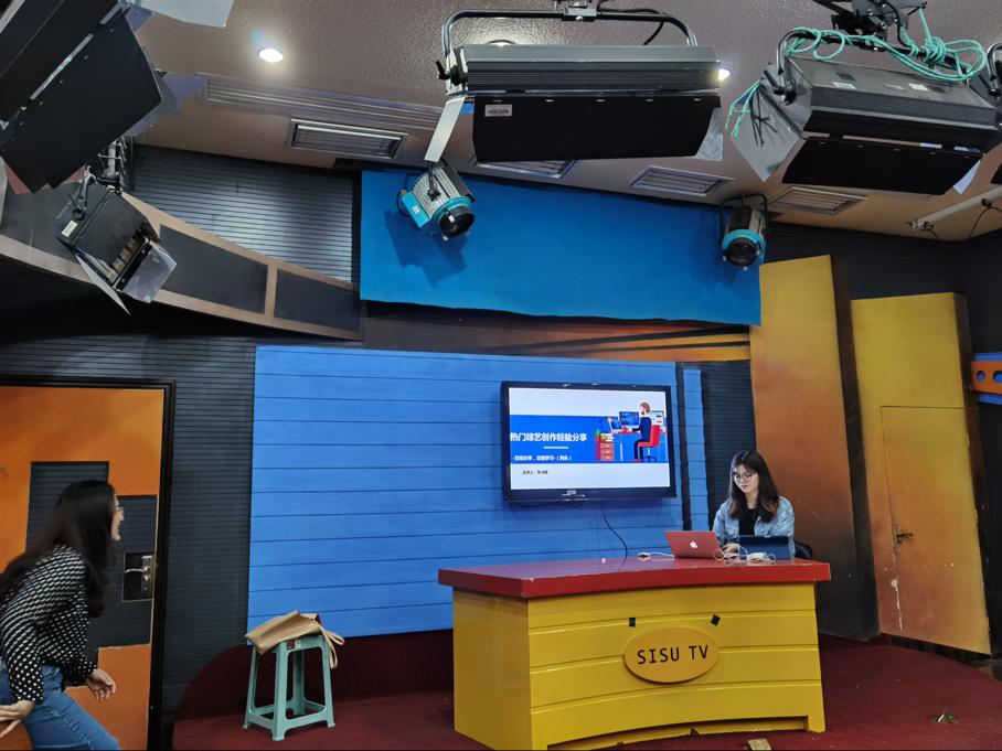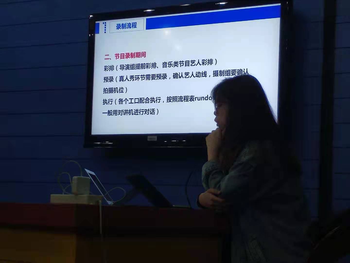2021年5月10日,太阳成集团tyc334552020级编导班全体同学在大礼堂演播室参与了由2021届毕业生李诗颖为同学们带来的《热门综艺创作经验分享》讲座。