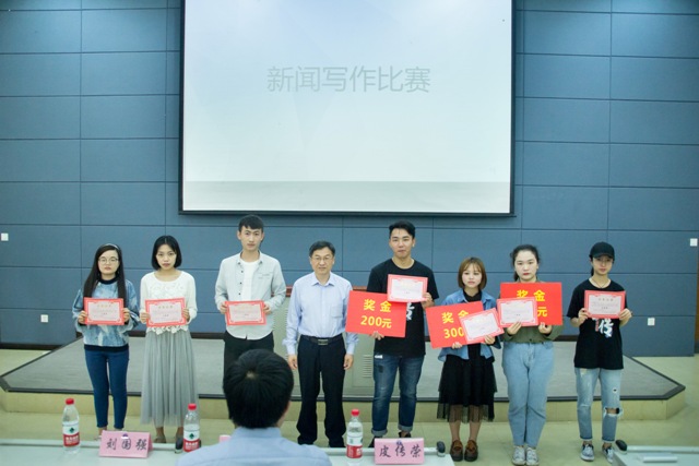 新闻写作比赛获奖选手合影