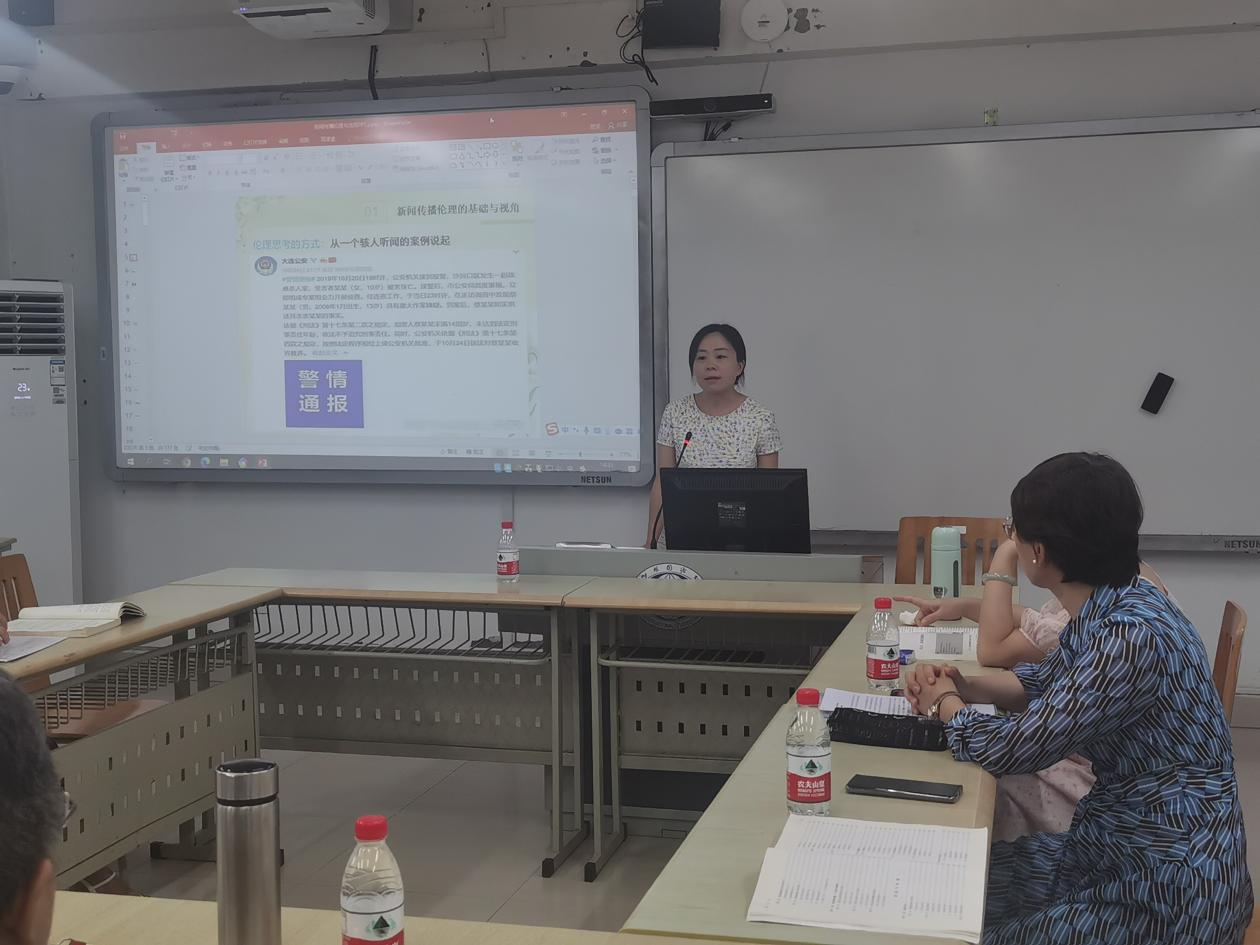 2023年9月14日下午,新闻学系在歌乐楼B102组织了本学期“说课·讲课·磨课”活动,郭赫男副院长深入教研室参与了活动,他要求老师们通过团队交流碰撞思想,查找问题,总结经验,提升对课程思政教学内容的理解,更好地落实立德树人根本任务。老师们围绕如何开展“以学生为中心,以任务为导向”的教学理念创新,做好信息化教学手段与传统教学方法的结合进行了教学展示和研讨。