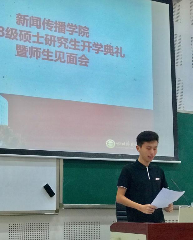 见面会上,2018级杨帆作为新生代表表达了新生努力拼搏,不负青春的愿望与目标。