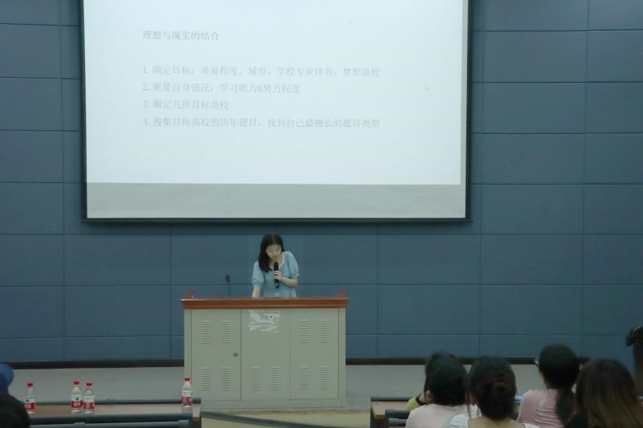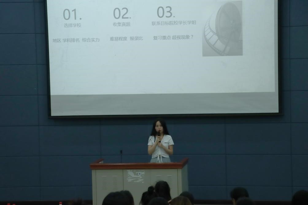 刘蓉同学则根据自己考取西南大学的经历向同学们讲述了关于考研调剂的宝贵经验。她表示,对于调剂,心态非常重要。