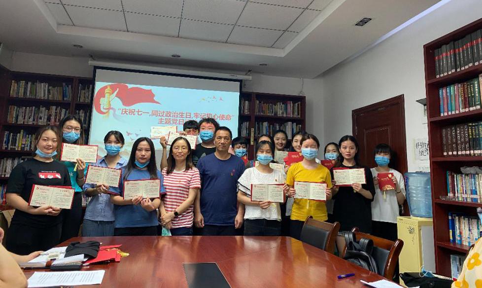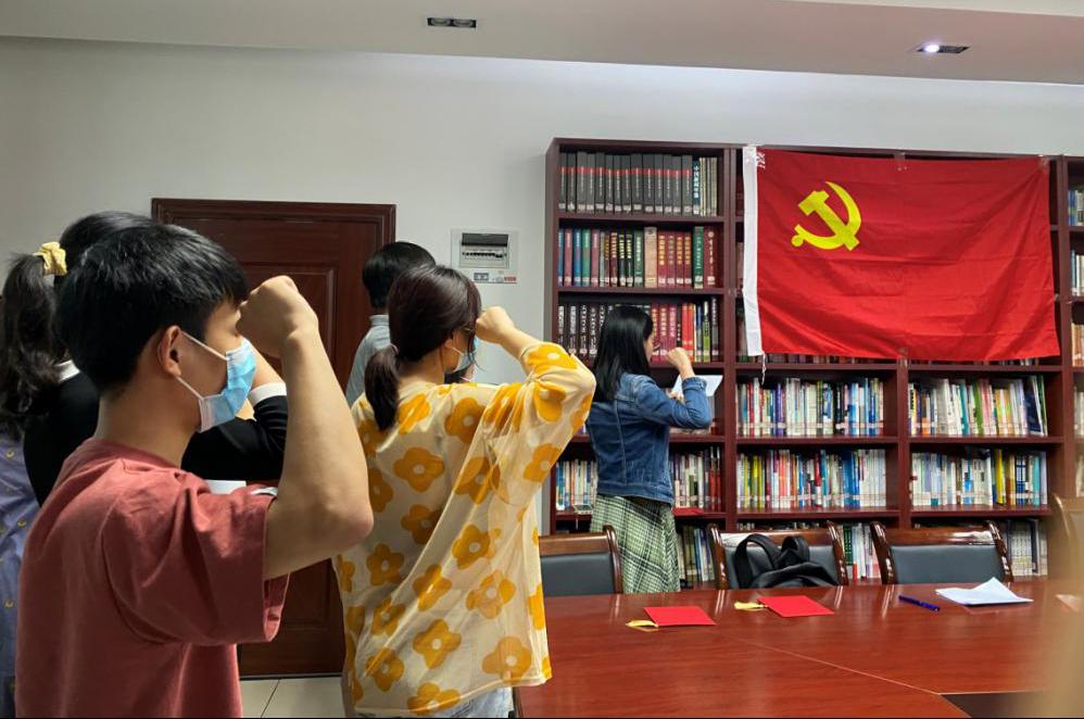 党员“政治生日”每季度或逢“七一”举行,会议开始,倪颖军书记与刘国强院长为本季度发展的党员赠送政治生日纪念册,鼓励党员们牢记入党誓词,铭记党的宗旨,发挥党员先锋模范作用。教工二支部委员李超老师带领全体党员宣誓,党员们面对党旗,郑重宣誓,重温入党誓词。