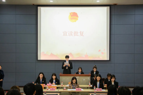 刘宇桐宣读了校学生会批复,倪颖军书记宣读了学院党总支批复。