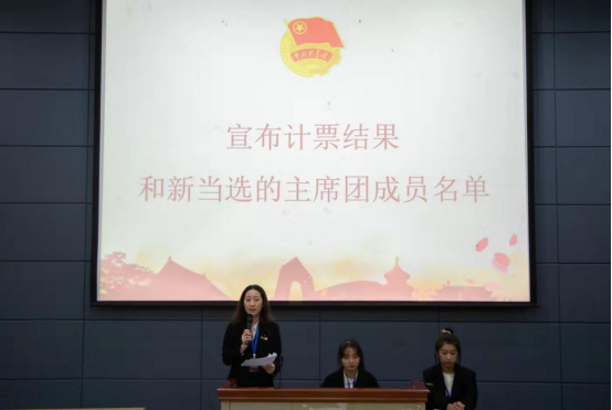 随后,学生会主席团候选人依次与各位学生代表见面,进行竞选演讲。由团总支副书记潘君奕主持,根据学生会主席团选举办法进行差额选举,推选出第十六届太阳成集团tyc33455学生会主席团成员张丁凡、邹欣琪。