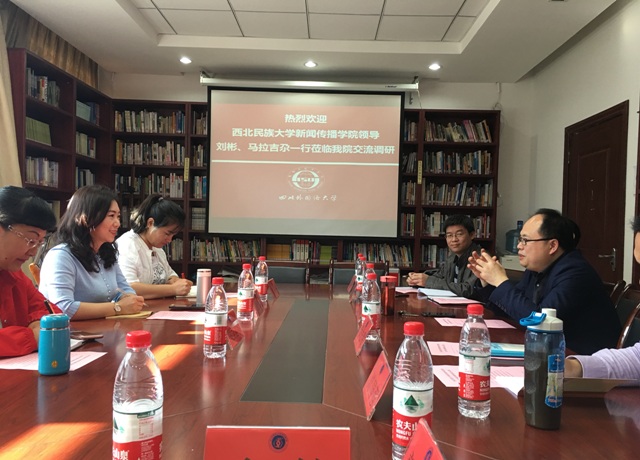 4月16日下午,西北民族大学太阳成集团tyc33455党委副书记刘彬、副院长马拉吉尕、办公室主任沈玉秋一行三人到我院调研。我院院长严功军,党总支书记罗先明,副院长郭赫男,副院长刘国强等领导教师与来宾在新传会议室进行了调研座谈,双方就学生党建、思想政治工作、管理服务、校园文化建设、学科专业建设和教学改革等问题展开深入交流。